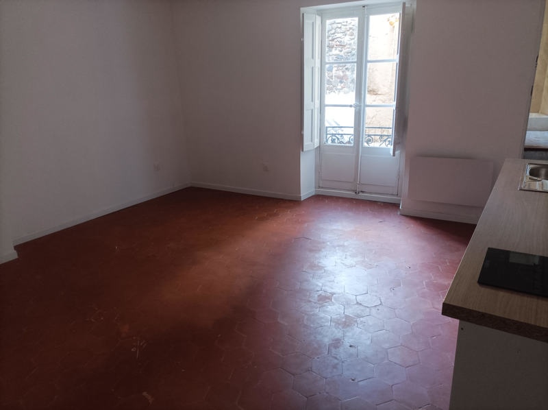 Bessan, centre ville, studio entièrement rénové au 1er étage : entrée sur pièce de vie avec cuisine ouverte équipée, salle d'eau avec wc. Provision pour l'eau froide incluse dans les charges.