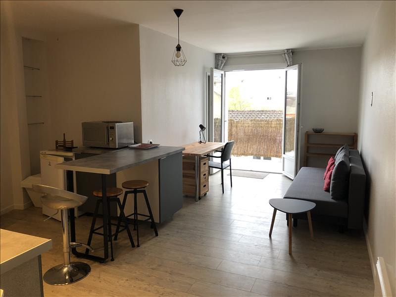 Appartement de type 1 bis meublé, avec vue dégagée sur les toits, composé d'une cuisine équipée ouverte sur le séjour, un coint nuit avec dressing, une salle d'eau avec WC.
