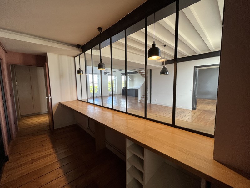 BORDEAUX, Place Stalingrad Au deuxième étage d'un immeuble en pierre sécurisé. Somptueux appartement T6 en format duplex ouvert non meublé, composé d'un vaste séjour baigné de lumière, une cuisine entièrement équipée avec cellier, 5 chambres, 4 points d'eau. Le tout complété par une terrasse d'environ 20m² donnant sur les toits.