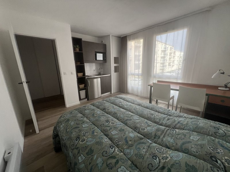 Ornano - à deux pas du tram A -Studio meublé au 1er étage d'une résidence sécurisée, une pièce de vie lumineuse avec ses grandes fenêtres, donne sur l'arrière pour plus de calme. Electricité et eau inclus dans les charges. Profitez de la piscine de la résidence et d'une laverie interne avec lave linge et sèche linge. Disponible
