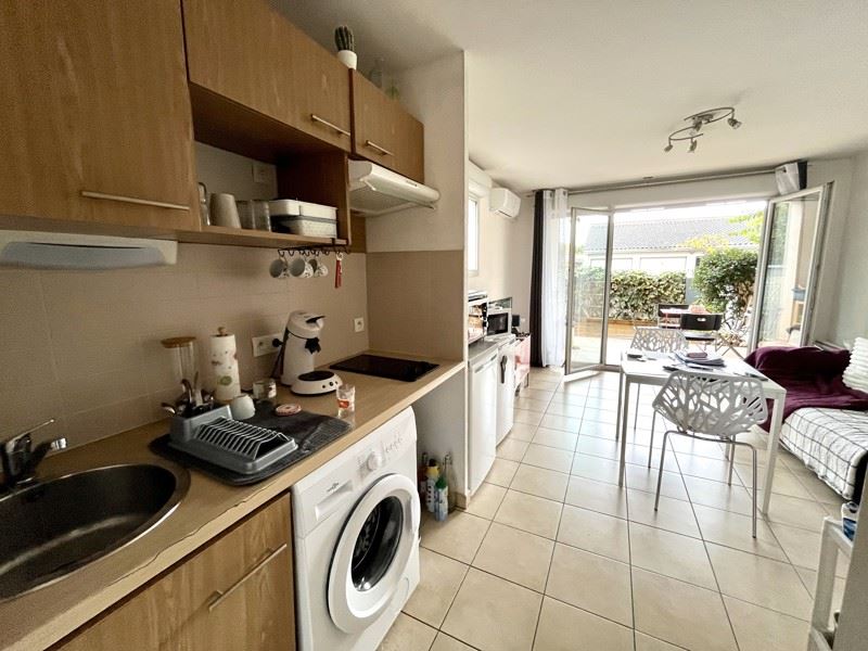 Appartement T1bis dans résidence calme et sécurisée. Vous pourrez profiter d'une pièce de vie avec sa cuisine aménagée donnant sur une terrasse de 8m² d'un côté et d'un coin nuit avec dressing et salle d'eau de l'autre. Les + : Climatisation, 2 place de parkings. Charges : Copro + eau + OM
