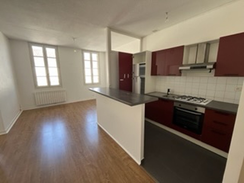 Au coeur de la ville de Castillon la Bataille, appartement type 3 de 54m2 au 1er etage d'un immeuble composé : d'une cuisine ouverte sur pièce de vie, 2 chambres, une salle d'eau et un wc.