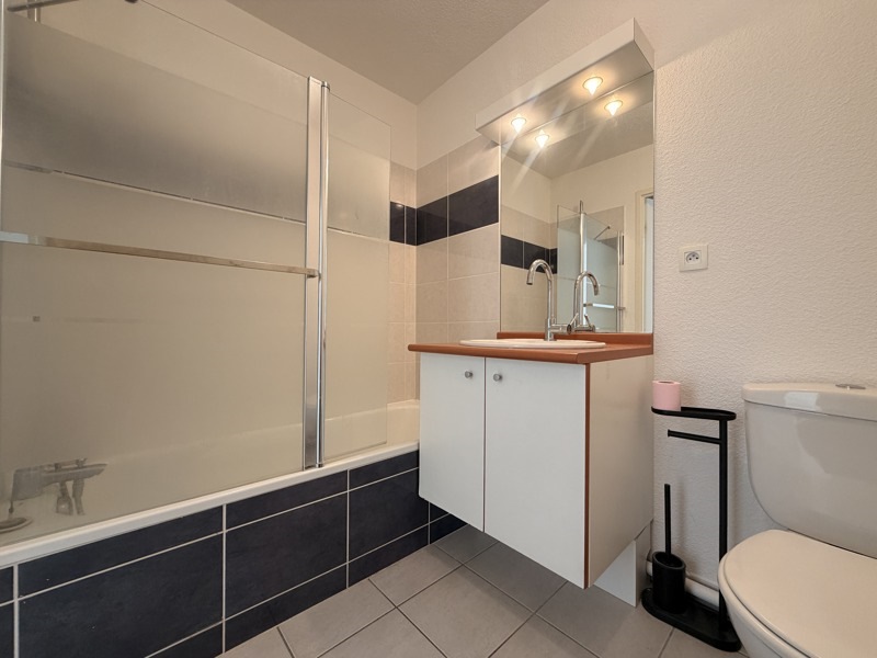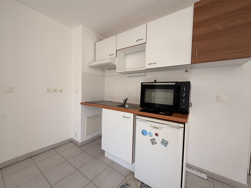 Appartement T2 avec balcon Cet appartement se compose d'un salon avec cuisine ouverte donnant sur un balcon, une chambre avec placard et une salle de bain avec WC. Ce bien est complété par une place de parking aérienne. Disponible de suite.