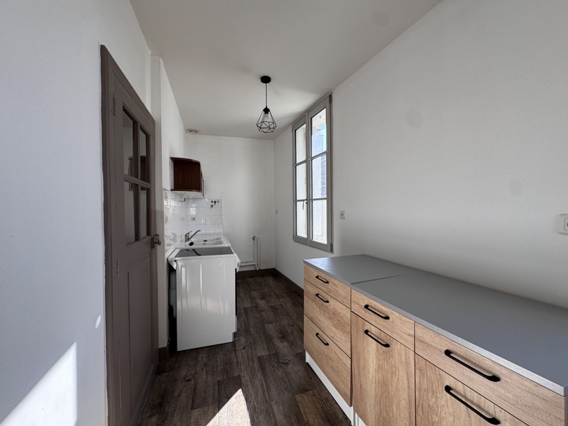 LIGUEIL - En face de l'Eglise, un logement de T2 se situant au 1er étage. Il dispose d'une entrée avec possibilité de rangements, un salon desservant une cuisine séparée équipée (cuisinière avec cuisson vitrocéramique, four et réfrigérateur), une chambre donnant sur une salle d'eau. Chauffage et eau chaude électrique. Dispo !