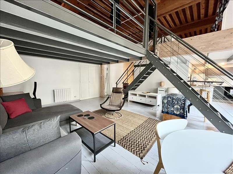 Croix-Rousse - Rue Duviard : Très bel appartement canut, de 54m² carrez et 91m² habitable, loué meublé avec ascenseur, offrant une belle pièce de vie avec cuisine aménagée ouverte, une salle de douche et un WC séparé. Vous trouverez deux mezzanines servant d'espace nuit et de bureau avec un dressing. Disponible de suite.