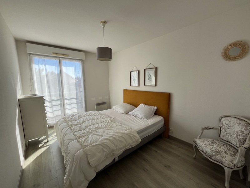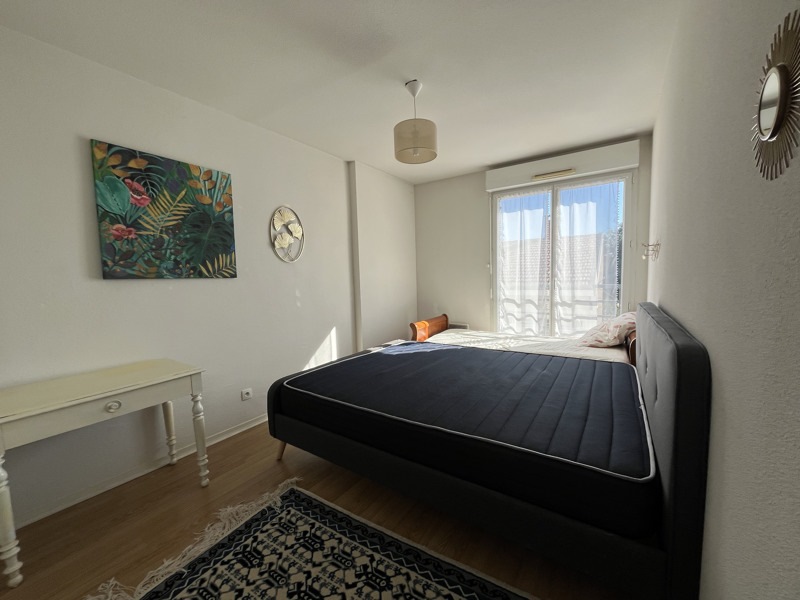 Mérignac, à deux pas de St Augustin Dans une résidence sécurisée, au premier étage, appartement de type 3 meublé composé d'une entrée, un salon avec cuisine ouverte et équipée, deux chambres avec placards, une salle d'eau et des WC séparés. Le tout complété par une place de parking et un balcon.