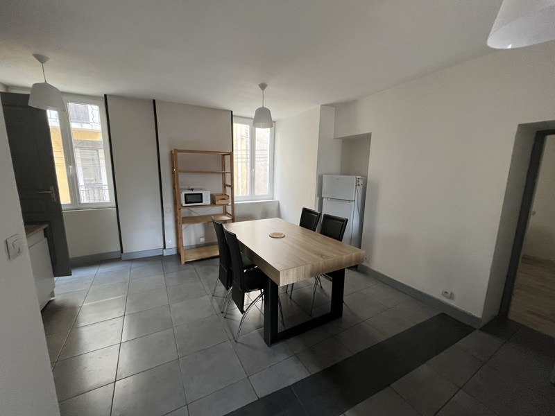 Appartement T3 composé d'un séjour avec coin cuisine, deux chambres, une salle d'eau et un WC. Eau et électricité inclus. Libre au 1er décembre