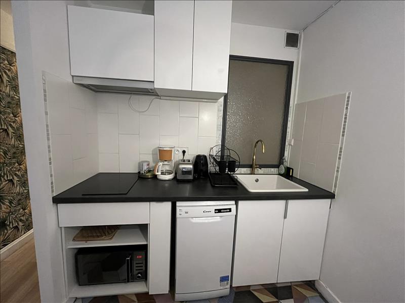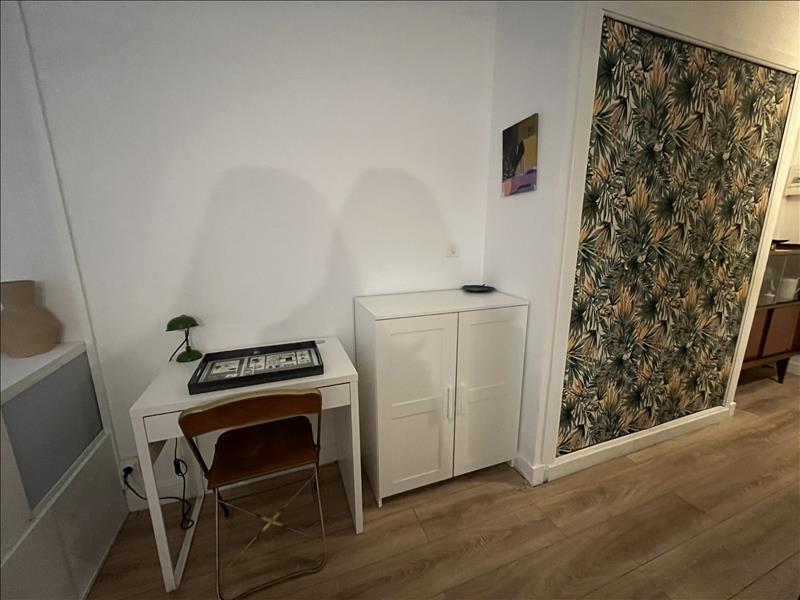 Studio meublé au RDC donnant sur une belle terrasse. Cuisine équipée avec espace nuit et bureau, salle d'eau et WC séparé. Stationnement à disposition. Chauffage electrique.