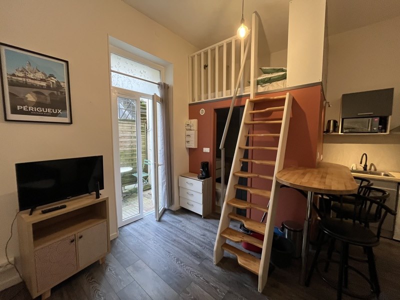Idéalement situé au rez-de-chaussée d’un petit immeuble de Périgueux, un appartement de type studio meublé en duplex, se composent d’une entrée sur salon séjour, une cuisine aménagée & équipée, une salle d’eau avec WC, coin nuit à l’étage. Terrasse. Chauffage individuel électrique. Electricité et eau compris dans les charges.