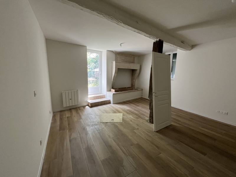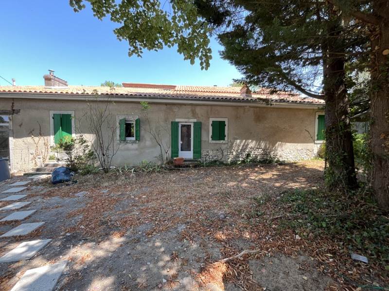 BRIE SOUS CHALAIS - Maison mitoyenne de plain pied, avec jardin d'environ 650 m², comprenant un sejour avec cuisine, WC, salle d'eau et 2 chambres (12 m² et 23m² environ). Jardin cloturé et portail. Libre au 06/04/2026.