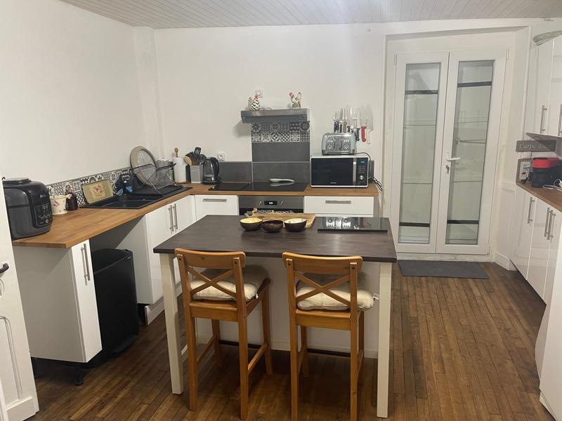 Maison de ville sur 2 étages se compose au rez-de-chaussée d’une entrée, une buanderie, une cave, une salle de bains et un wc indépendant. Au 1er étage, une cuisine aménagée & équipée, un salon séjour, une chambre et une salle d’eau. 2eme étage une deuxième chambre, une salle d’eau et un wc indépendant. Cave et cour.