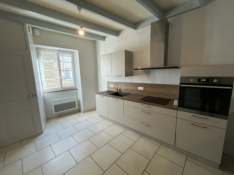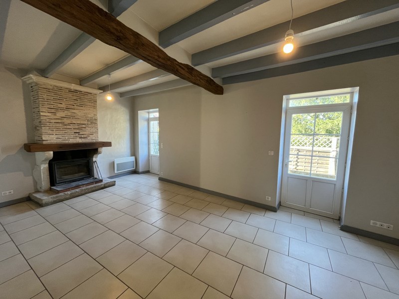 CIVRAY - Maison de ville proposant au rez-de-chaussée une pièce à vivre avec insert bois, une cuisine équipée et un WC. A l'étage, trois chambres et une salle d'eau. A l'extérieur, une terrasse attenante et un jardin et un garage non attenants. Libre le 24/04