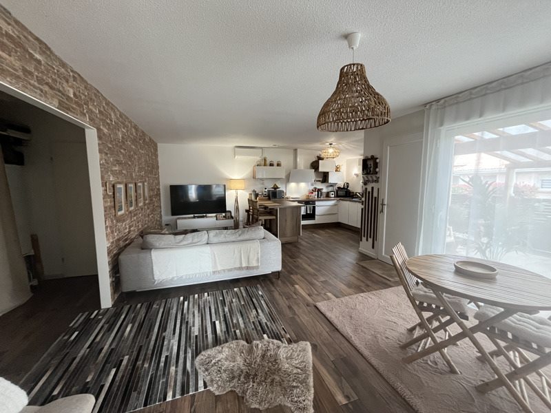 EAUNES - Villa meublée de plain pied dans une copropriété avec piscine. Elle se compose d'une cuisine équipée ouverte sur le séjour, 2 chambres (une avec placards), une SDE et WC séparés et un placard dans le couloir. La maison est climatisée avec terrasse et cellier attenant et 2 places de parking aérienne. Disponible mi-août.