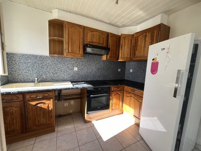 Maison T3 sur deux niveaux comprenant au RDC une cuisine aménagée ouverte sur séjour. Au 1er étage, on retrouve deux chambres et une salle d'eau avec WC. Une cave et une terrasse complétent ce bien. Charges : TEOM Disponble de suite !