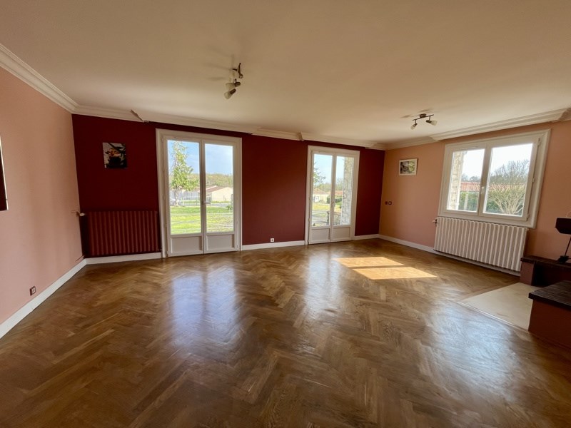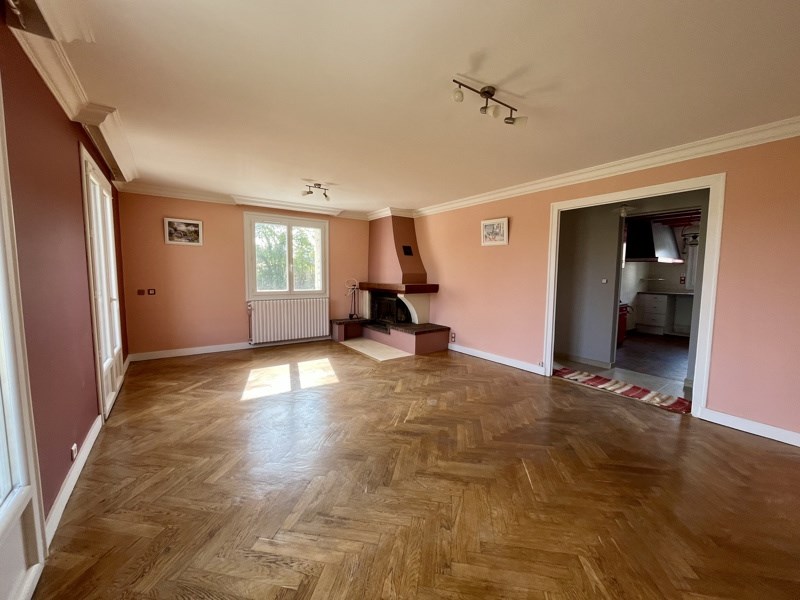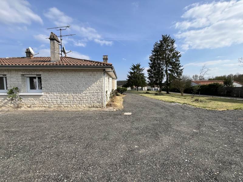 Au calme, sur un terrain clos de 2200 m², maison de plain-pied de 109 m² offrant une entrée, un séjour avec cheminée insert, cuisine indépendante aménagée, 3 chambres dont 2 avec placards, sdb, wc, garage attenant et un second garage indépendant avec appentis. Disponible de suite.
