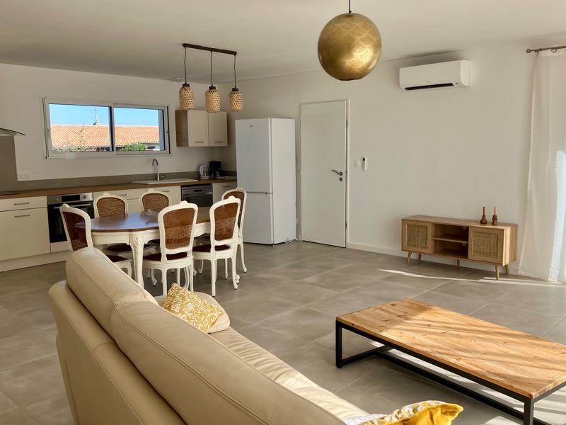 SAUBENS - Maison neuve T4 meublée de 101 m². Dans un secteur calme, elle se compose d'un grand séjour avec cuisine entièrement équipée, de trois chambres dont une suite parentale avec sa propre SDE et son dressing, d'une salle de bains et d'un wc séparé. Un garage avec une buanderie et un jardin viennent compléter le bien.